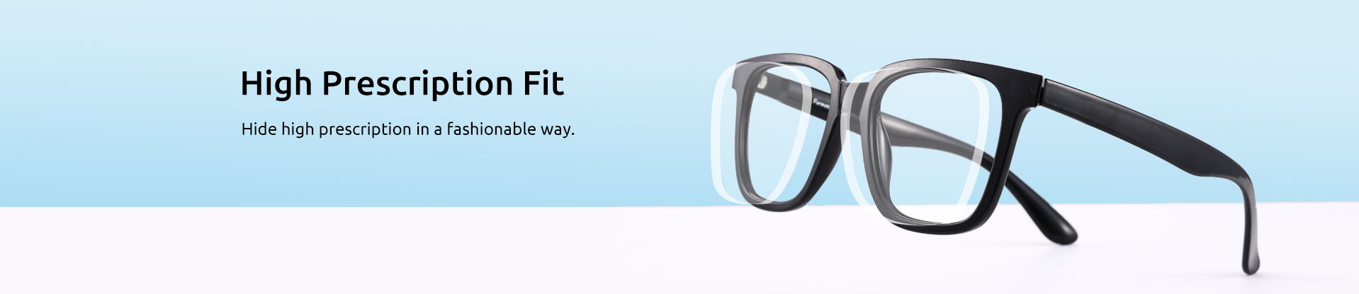 When purchasing single vision eyeglasses, wearers with higher prescription strength should be aware that large frame with a wider lens is not recommended, instead a smaller and narrower lens width will contribute to a thinner edge, lighter weight and greater comfort. Besides, a metal frame with a thin rim cannot hide the lens edge thickness as the same as a plastic frame, so the shorter and narrow plastic frame is recommended.
